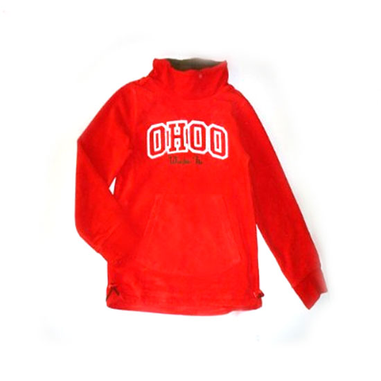 Displayed is a knit pullover coming in vibrant red. Its chest is designed with text in a stylish font. This piece also features a mock neck for comfort and added appeal.