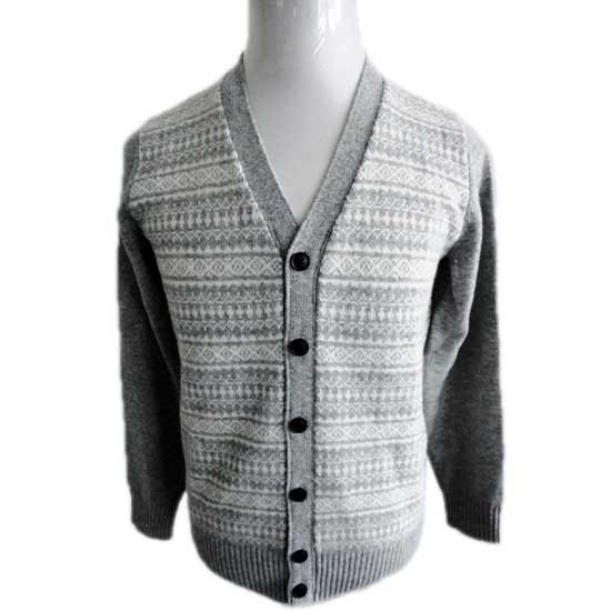 This men's cardigan is knitted with stylish motifs throughout the whole piece. The casual cardigan features a V neck and a buttoned front. The unique sweater makes a wonderful addition to your winter wardrobe.