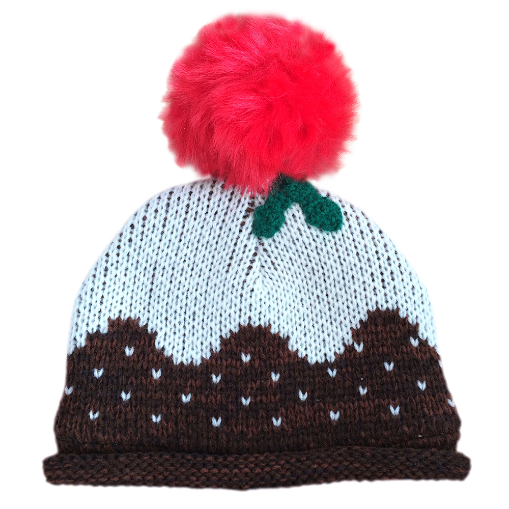 100% Acrylic jacquard hat w fake fur pom & full fleece lining