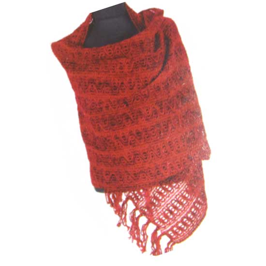 This ladies' red scarf is knitted with sophisticated crotchet patterns. The woolen scarf brings great warmth and comfort to the wearer. It makes an essential accessory for ladies in the cold winter.