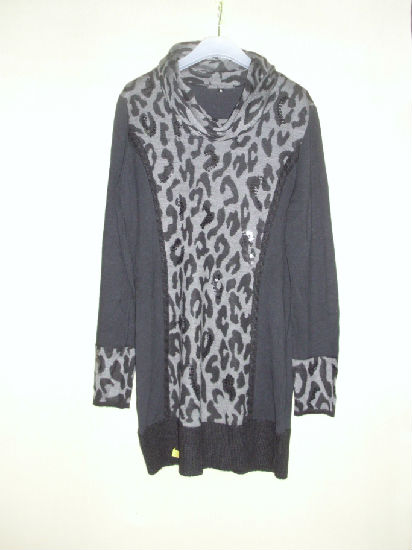 Ladies' jacquard knitted top features a loose long fit with jacquard knitted design on the the front and cuffs.