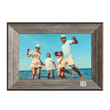 KODAK 10.1 Inch Digital Photo Frame Wi-Fi Enabled,with imported wood material frame,a combination of modern technology and nature.You can share your happiness with your friends and family anytime and anywhere via using the "KODAK DIGITAL FRAME"APP/EMAIL/GOOGLE PHOTO etc.Easy to use with 800*1280 resolution HD touchscreen.A perfect gift and smart home decoration.