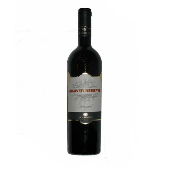 Displayed is a bottle of quality Hungarian red wine. The wine is fermented with carefully chosen grape varietals for a blended aroma and taste. The full-bodied texture offers a strong mouth feel.