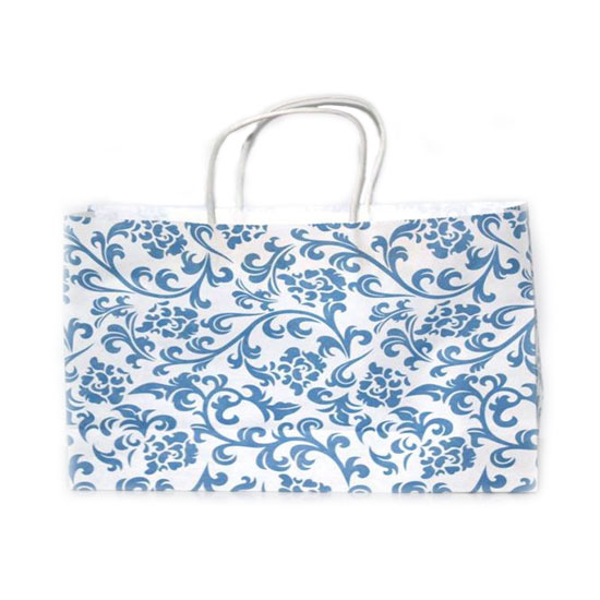 This quality bag comes with a stylish and elegant design. It is made of top-grade kraft paper for durability. This kraft paper bag is designed with delicate floral patterns in vivid blue for an eye-catching look.
