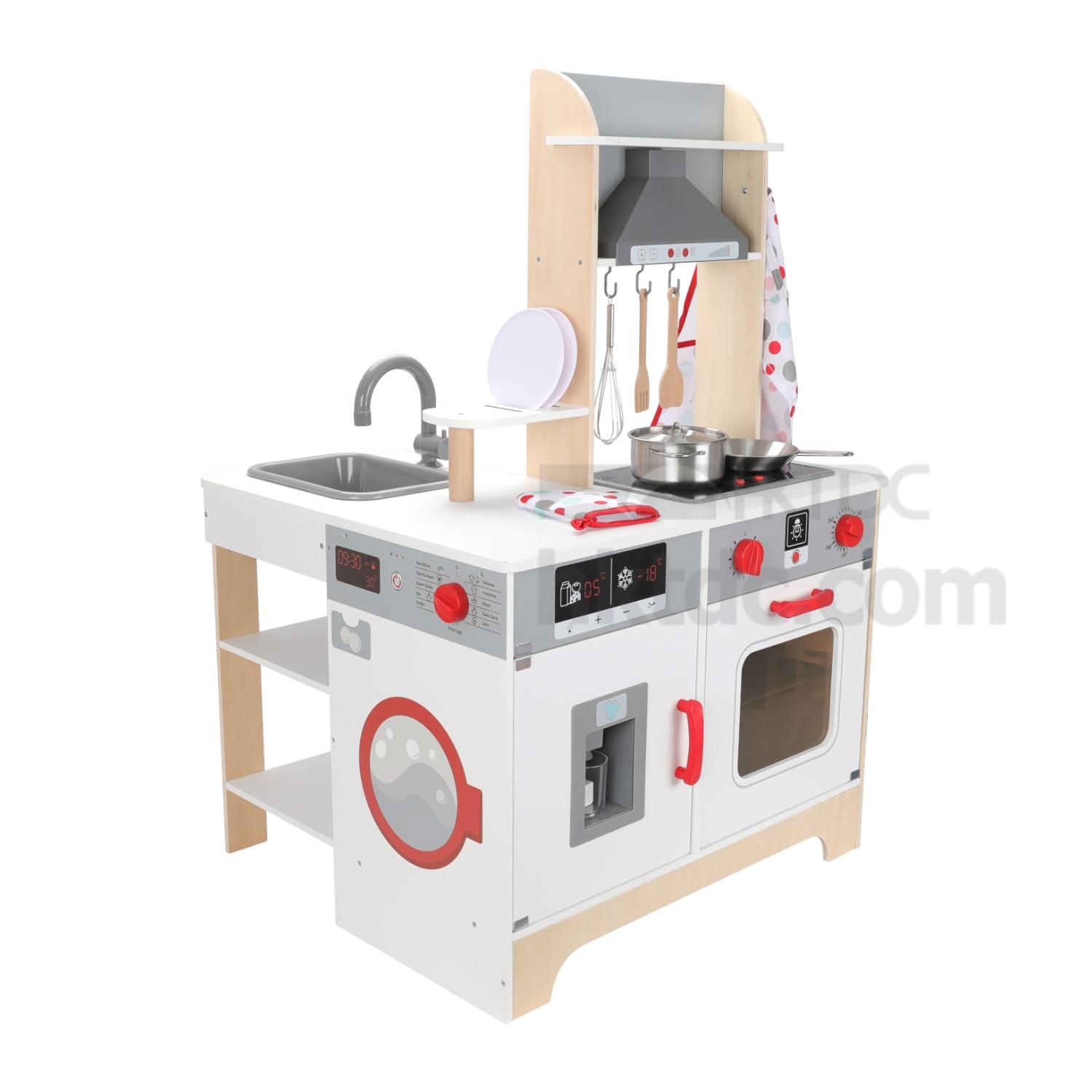 This kitchen contains the necessary kitchen utensils while playing. The range hood, stove, and washing machine have acoustic and optical effects. The ice maker simulates the ice making process and simulates the kitchen scene to enhance the fun. The design of garbage classification, responds to the times and education. It’s really education through entertainment.