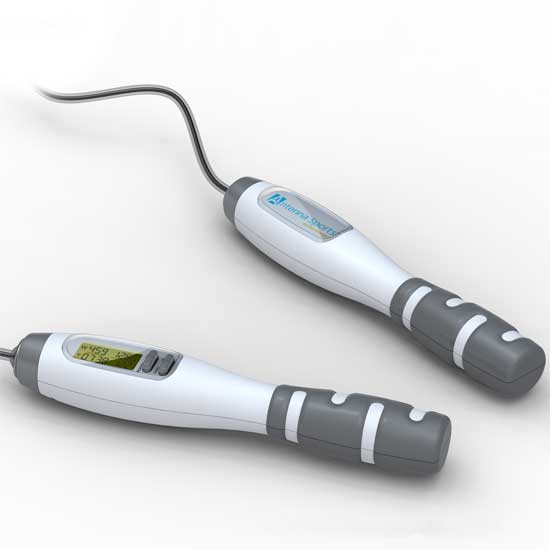 Pictured is a jump rope that uniquely comes with a digital and cordless design. One of its handles is fitted with an LCD screen that offers distinct display. This piece is also approved with the CE and RoHS standards.