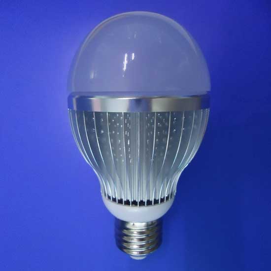 Displayed is an LED bulb coming with a semi-global glass shade. It is fitted with fins to achieve satisfactory heat dissipation. Go green by replacing traditional bulbs with this piece.