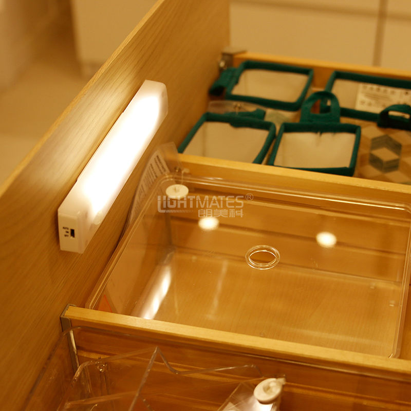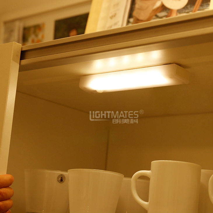 This LED cabinet light has a motion sensor and can activate when motion automatically when motion is detected. It has a durable ABS housing and is equipped with high quality LEDs to ensure bright illumination. The LED cabinet light is powered by three AAA batteries and offer simple cable-less installation.