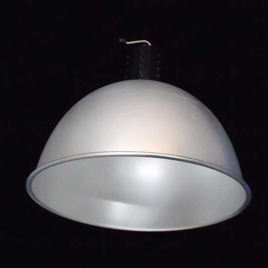 This LED ceiling lamp boasts a silvery aluminum shade in a dome structure. The lamp sheet
