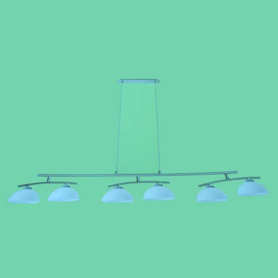 This displayed ceiling light gives a modern minimalist design. Three perpendicular sets of dual lampshades are giving light in a parallel manner. A total of 6 LED bulbs are used to offer the exceptional brightness.