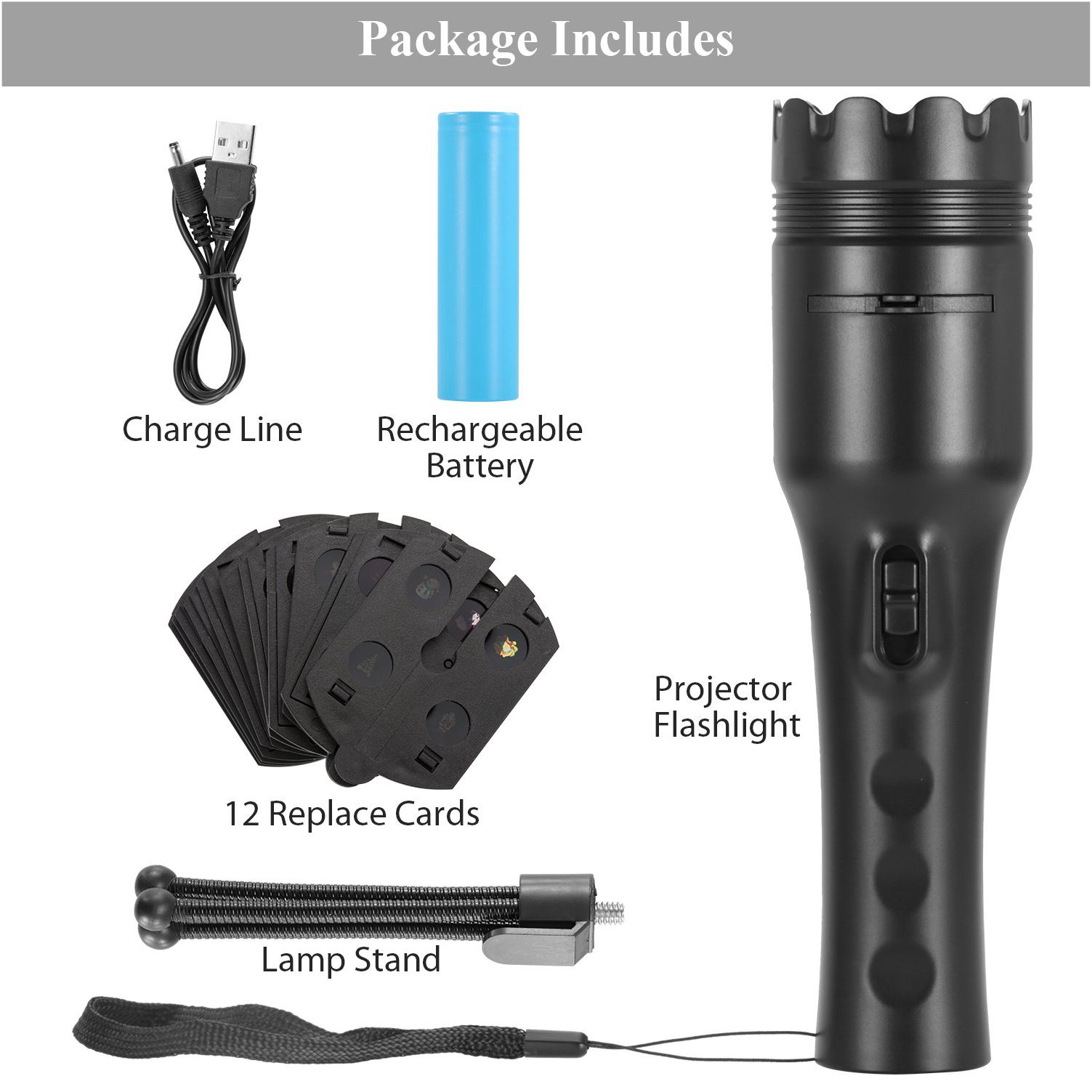 FLASHLIGHT & LIGHTING PROJECTOR: 2 in 1 design, easy to operate by slide-switch to select lighting modes, use it as handheld torch or decorative party light. Simply insert your favorite slide and turn on the light for vivid dynamic display, enhance the atmosphere of your party.