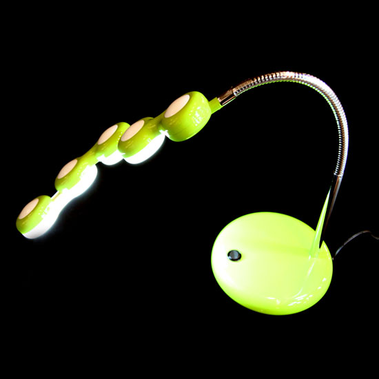 Featured is a desk lamp with a gooseneck design. The powerful LEDs give exceptional brightness while consuming less energy. The LED desk lamp also comes with a weighted iron base for better balance.