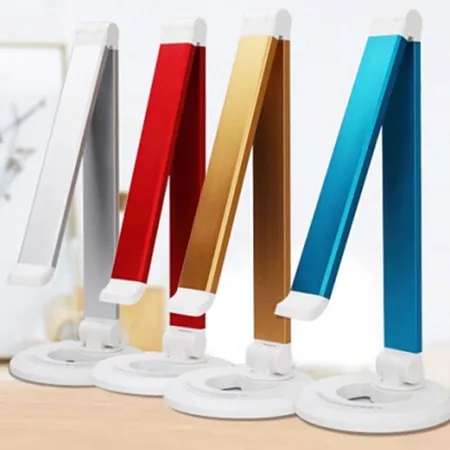 This is an LED desk lamp with a folding design. It has a modern appearance in bright colors. This desk lamp is available in assorted colors for you to choose from.