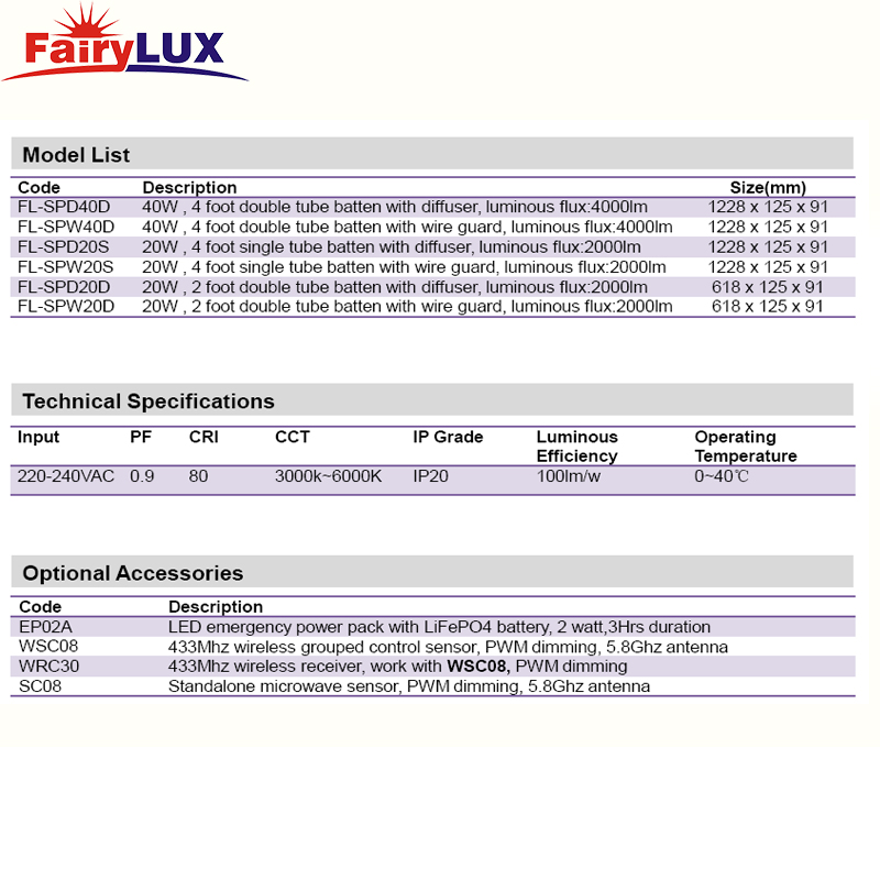 Suitable for car parks, warehouse, workshops and fire stairs.