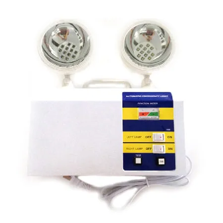 This is an LED emergency lamp with 2 LED lamps and a rectangular operation box. It allows at least 8 hours of lighting after the main power fails. It can be used as an exit lamp and a sign lamp.
