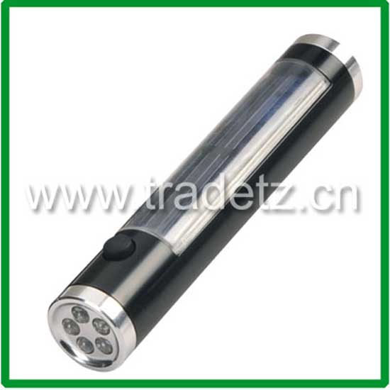 This aluminum flashlight features five LEDs installed in it, allowing it to give a strong bright light beam when used. This powerful LED flashlight is creatively designed into a cylindrical shape, making it very convenient and easy to store at home without using up too much space. A push button is set on the case of the torch for users to turn it on and off.