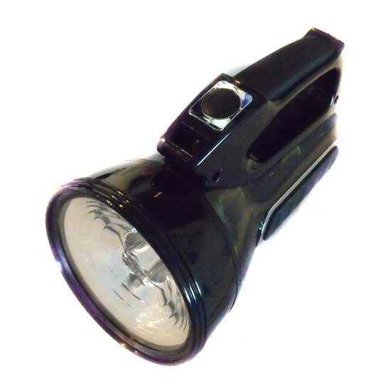 Displayed here is an LED flashlight with a weather-resistant construction. It features a large reflector for enhanced luminous efficacy. This LED flashlight is built to last for years.