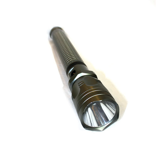 Featured here is an LED flashlight with exceptional brightness. The aluminum construction offers lasting durability. This handheld flashlight is great for camping or hiking use.