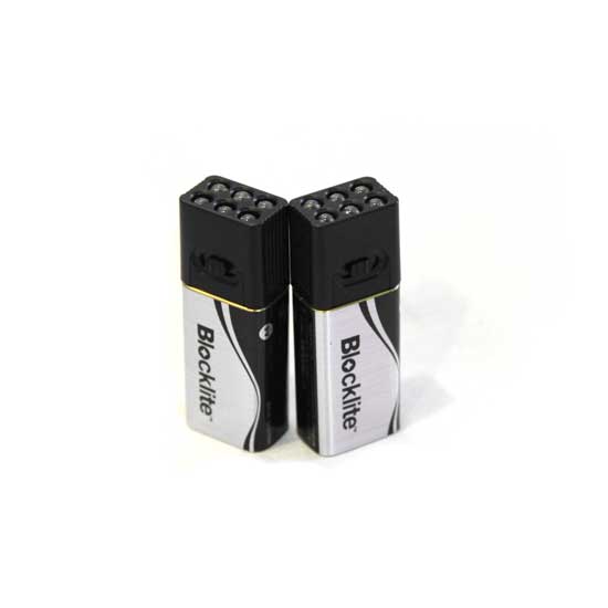 This LED flashlight features a compact, box-shaped housing in a black and silver color. The 9V LED flashlight is ideal for both indoor and outdoor use. It boasts superior brightness and a long lifespan.