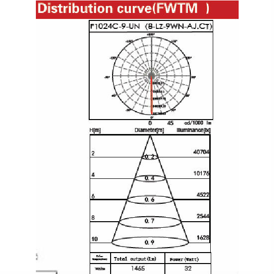 - Beam angle 8°(FWTM)/4°(FWHM).