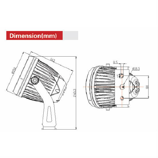 - U shape bracket, easy for installation. Optics: adopted ultra narrow beam lens (FWTM 8°, FWHM 4°), 95% luminous intensity has been focused on center beam, suitable for façade lighting of high rise building, bridge,stadiums and container terminal etc.