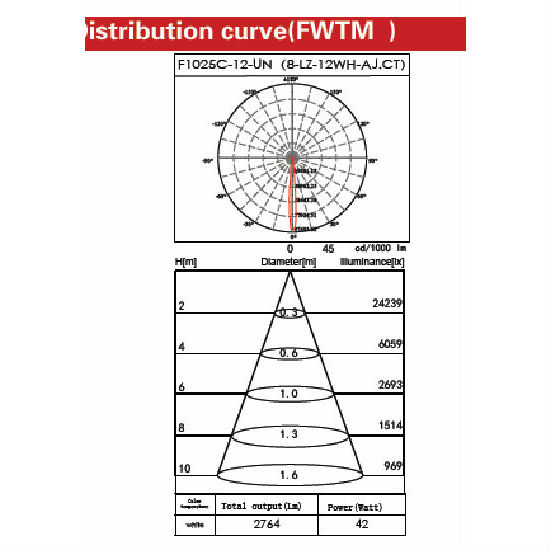 - Beam angle 8°(FWTM ), 4°(FWHM ).
