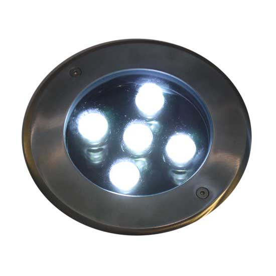 As shown is an LED floor light which is framed by a corrosion-resistant stainless steel casing. It is fitted with 5 strong LEDs which project light with high brightness. This piece can be installed easily with low maintenance cost.