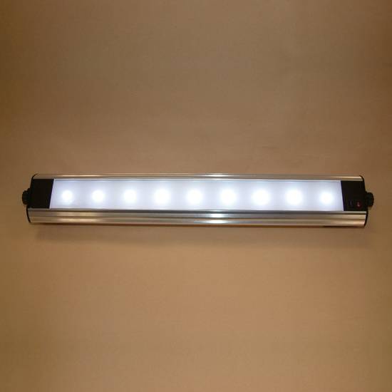 The featured product is a LED lamp, with 9 LED light bulbs, they are set on a long metal penal. Stylish design, suitable for both indoor and outdoor use.