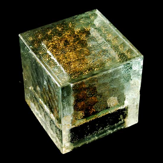 Displayed here is an LED lamp with a futuristic and minimalist design in a shape of a cube. The glass construction with a rough texture showcases a stylish touch of uniqueness. Accessorize your living room with this decorative LED lamp.