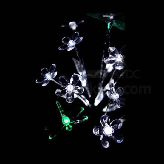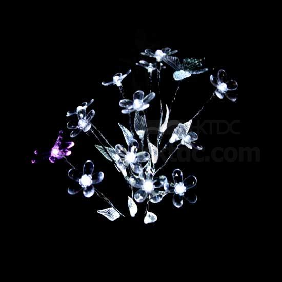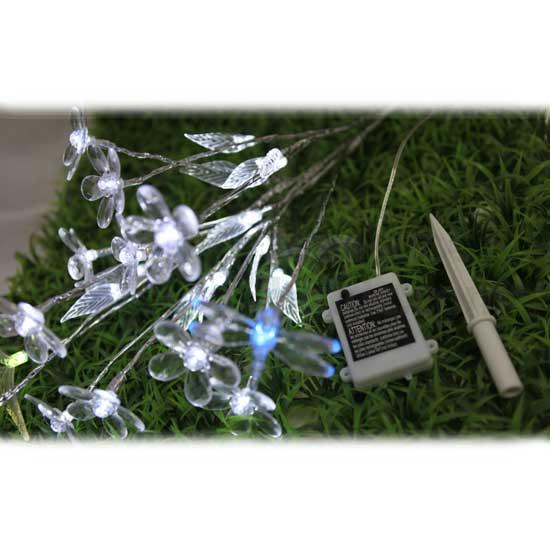 This exquisite LED lawn stake is a great decoration for gardens. It comes in the shape of a bunch of flowers with a butterfly and a dragonfly on it. The high-quality decoration runs on 3 AA-sized batteries.