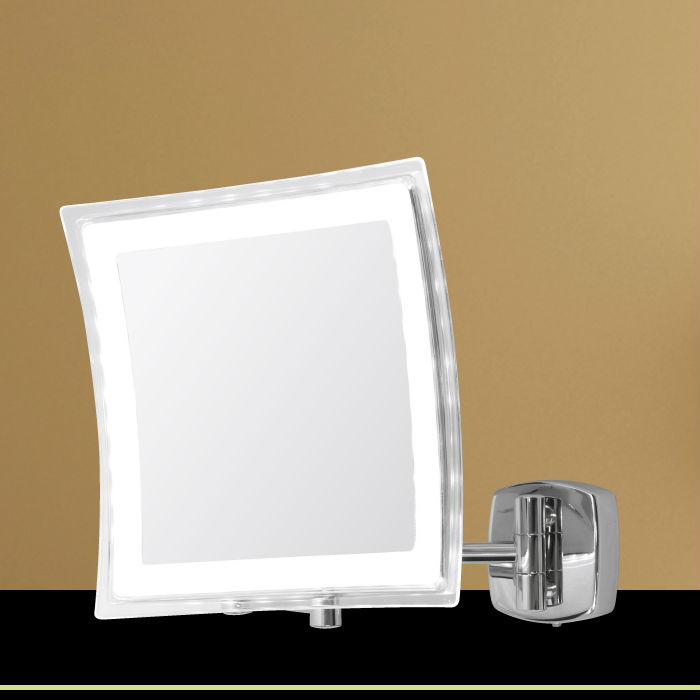 This is a double-sided LED lighted mirror suitable for wall mounting. It adopts quality LEDs that can work for around 50,000 hours. This chic and thin LED lighted mirror is a great addition to your home.