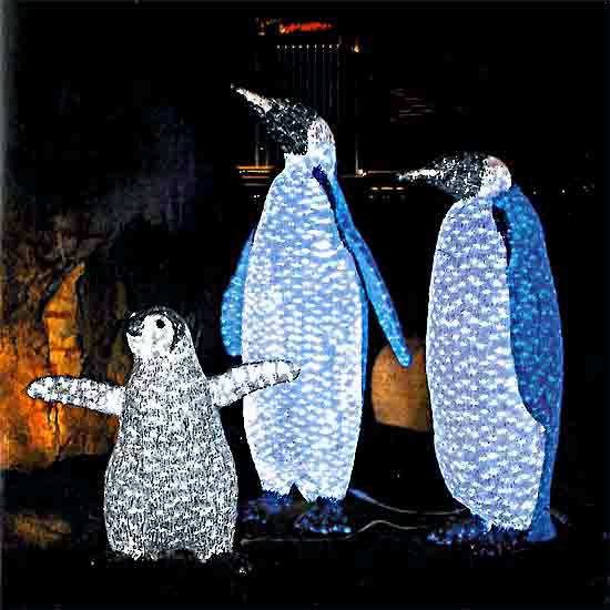 These LED lights come in interesting penguin shape. Each is powered by 1,664 pieces of bulbs to give off a bright and shimmering lighting effect. The lights are suitable for outdoor decoration purposes.