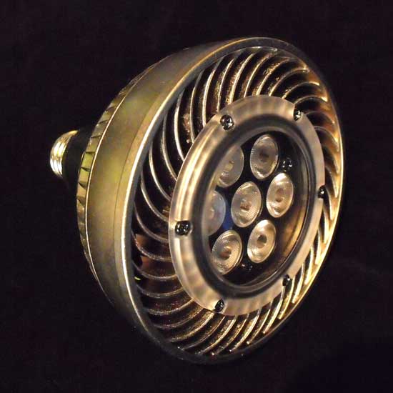 This LED PAR lamp features seven super bright LEDs as the light source. Each comes with an optimally designed optical lens to ensure the best illumination performance. The numerous heat-sink fins provide efficient heat dissipation.
