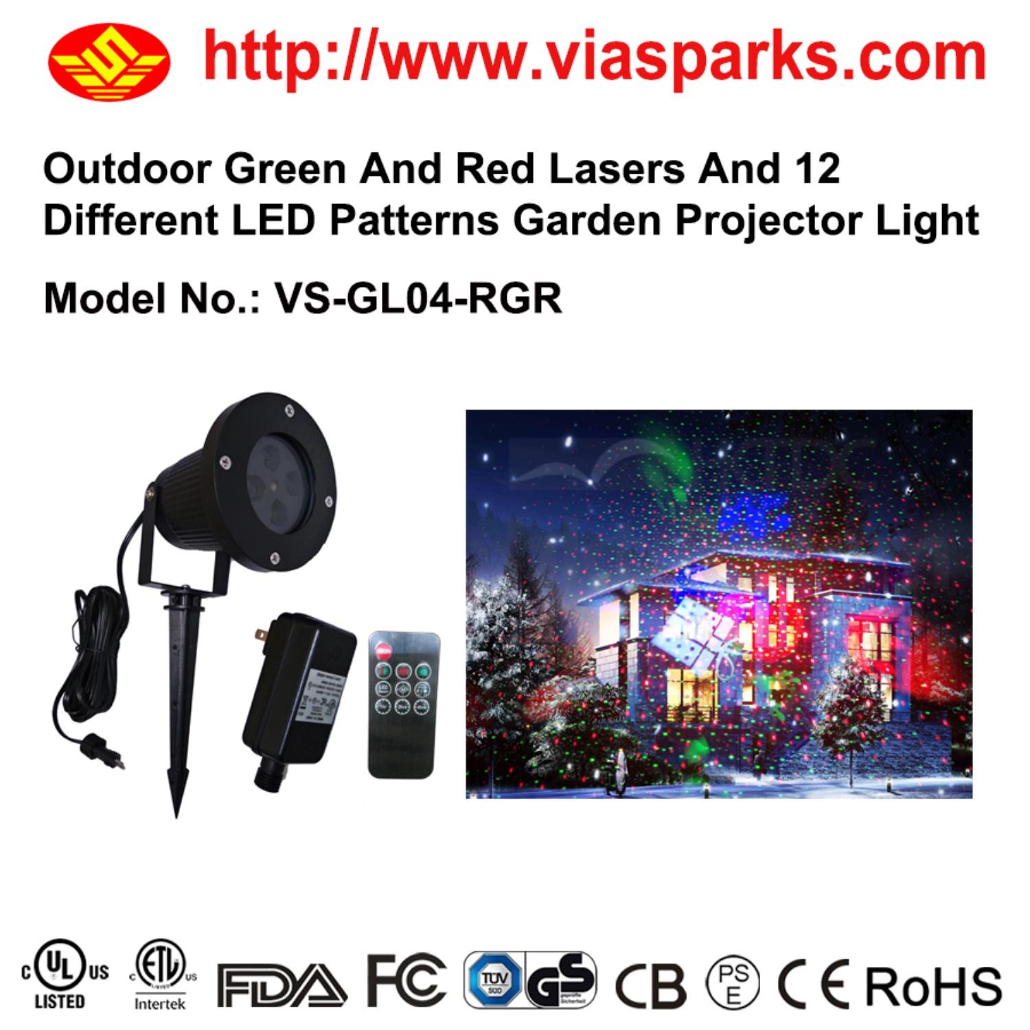 Outdoor Green and Red Lasers and 12 Different LED Patterns Garden Projector Light