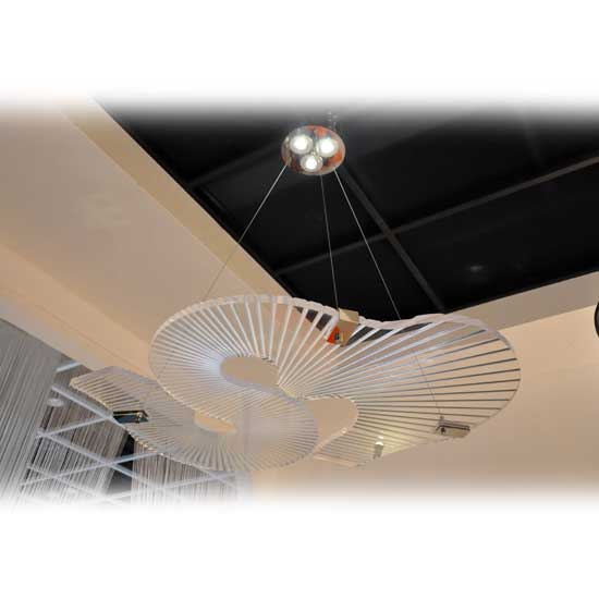 This LED pendant lamp features a unique, abstract design. The quality pendant lamp is constructed of acrylic and stainless steel. The stylish LED pendant lamp can easily blend into any modern interior decor.