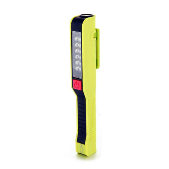 This is an LED penlight that comes in a compact shape. With a magnet on the top, this penlight is easy to use. This penlight features LEDs on the body and top for convenient illumination.