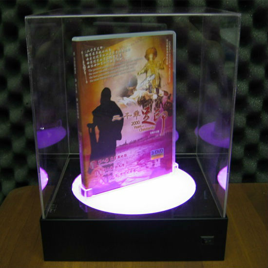 This product display box comes in a practical rectangular shape built with a LED-lit platform. The acrylic box cover allows clear viewing with great details, while the LED-lit platform rotates automatically for showcasing products in all directions. This product display box is perfect for retail store display.