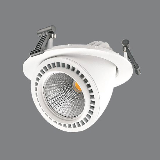 This is an LED downlight with a white housing. It is equipped with a well-designed heat sink to ensure excellent thermal dissipation. The LED light source lowers energy costs and has a long lifespan.