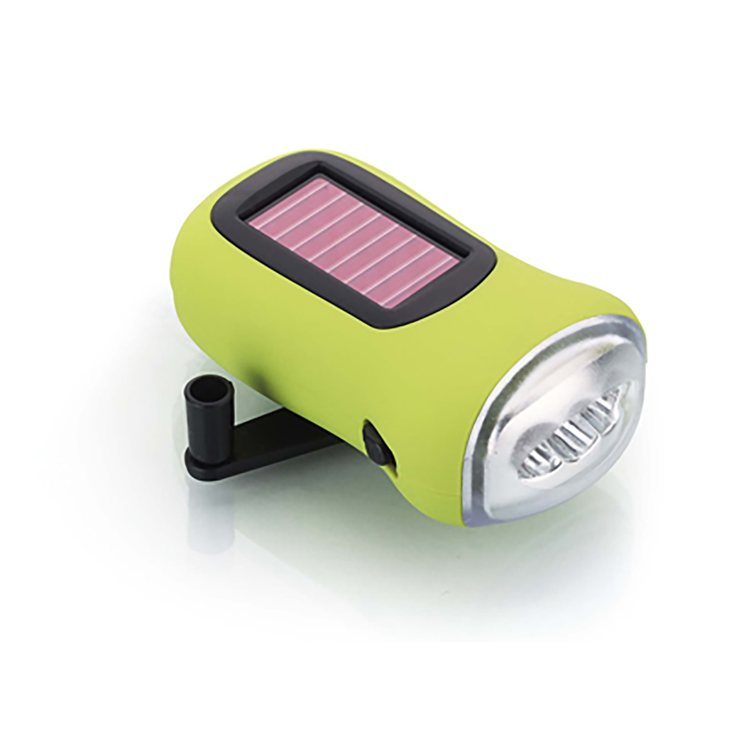 3 LEDs solar dynamo flashlight with lanyard includes the following features: