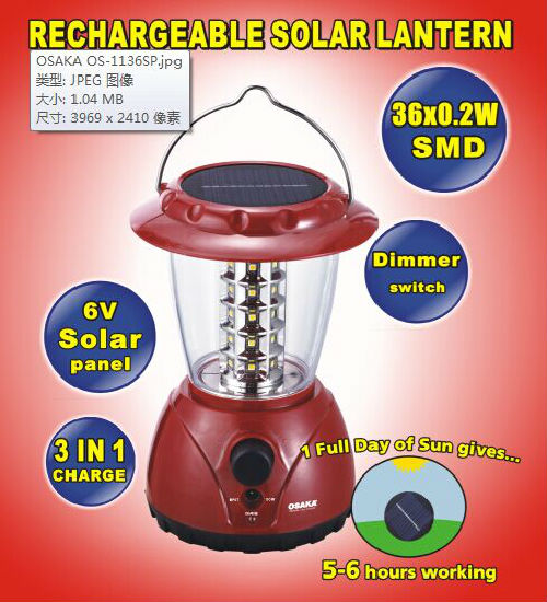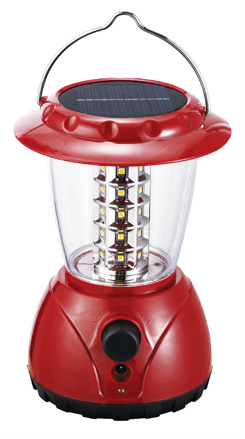 This LED lantern features a sturdy, red-toned exterior, which can be mounted to the wall, suspended, or carried around with the rotatable handle. Designed for outdoor applications where electricity is hard to access, this lantern packs a rechargeable battery and solar panel to light up a large area with adjustable brightness.