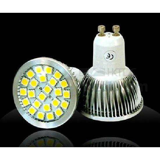 Displayed here is a LED spotlight with multiple LED chips as light source. It delivers bright illumination and has a GU10 base for easy installation. This bulb is durably constructed and makes a reliable lighting choice.