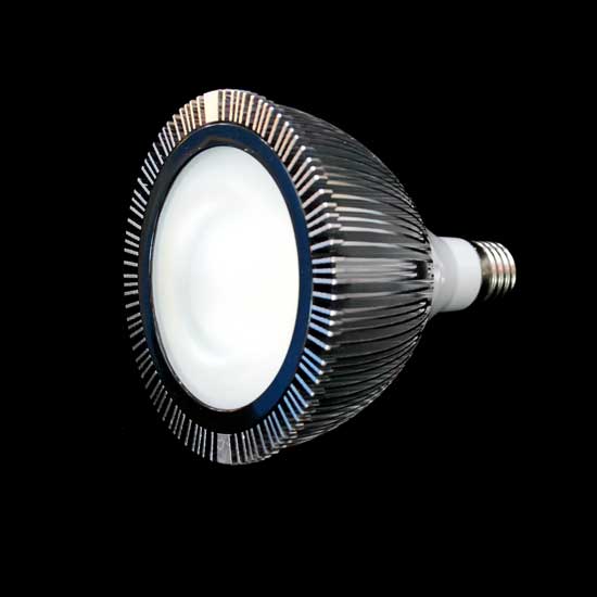 Displayed here is an LED spotlight fitted with 48 high-power LEDs. This piece can operate with E26 and E27 lamp bases. The bulb is also completed with plenty of fins for good heat dissipation.