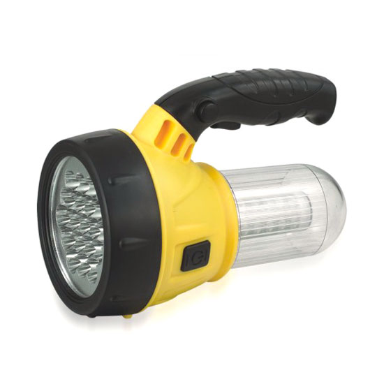This is an LED spotlight coming with a black and yellow finish. It gives off white light to illuminate a wide area. This rechargeable spotlight is an energy efficient choice.