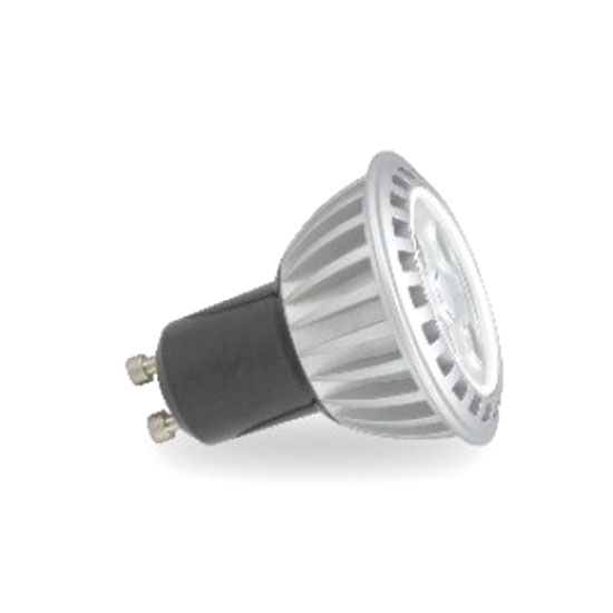 Displayed is an LED spotlight bulb with a silvery finish. It is well fitted with high brightness LEDs for sufficient illumination. It saves you money on electricity bills.