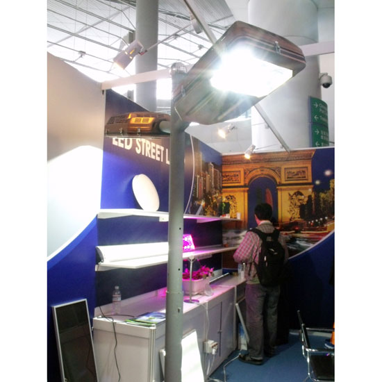 This street lamp is equipped with LEDs for strong and even illumination. The gray street lamp comes with a sturdy pole and durable casing. With a wide beaming angle, this LED lamp makes a great choice for street lighting.