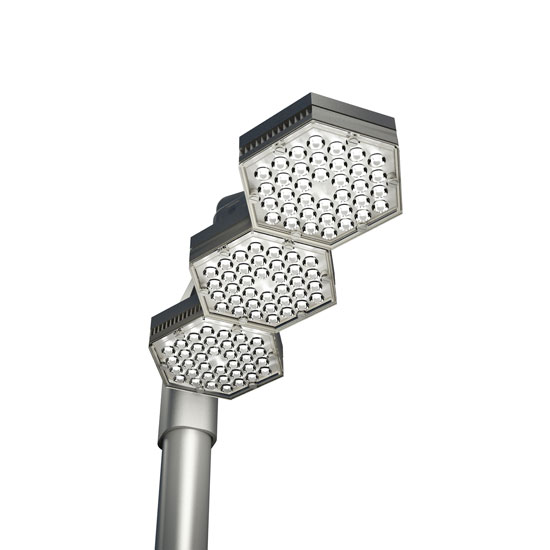 This street light comprises three hexagonal-shaped modules that are engineered with top-quality LED light sources for high-strength illumination. The LED street light has a high luminous efficacy of more than 130 lumens per watt. It offers remarkably high energy efficiency and an extended lifetime.