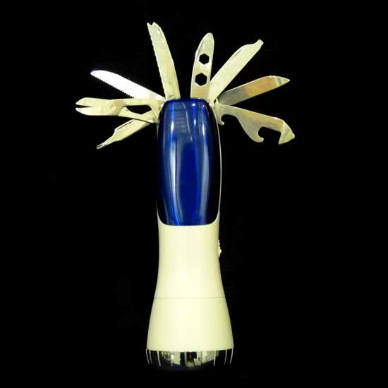 As shown is a touch built-in with energy-saving LEDs. The ultra-bright illumination is sufficient for outdoor use. The bottom of the knife comes with extendable knives for handy use.