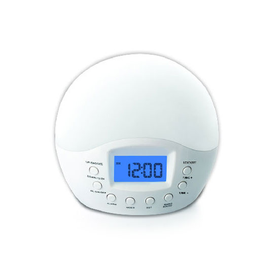 - Wake up by radio, nature sound or alarm music with wake-up light.