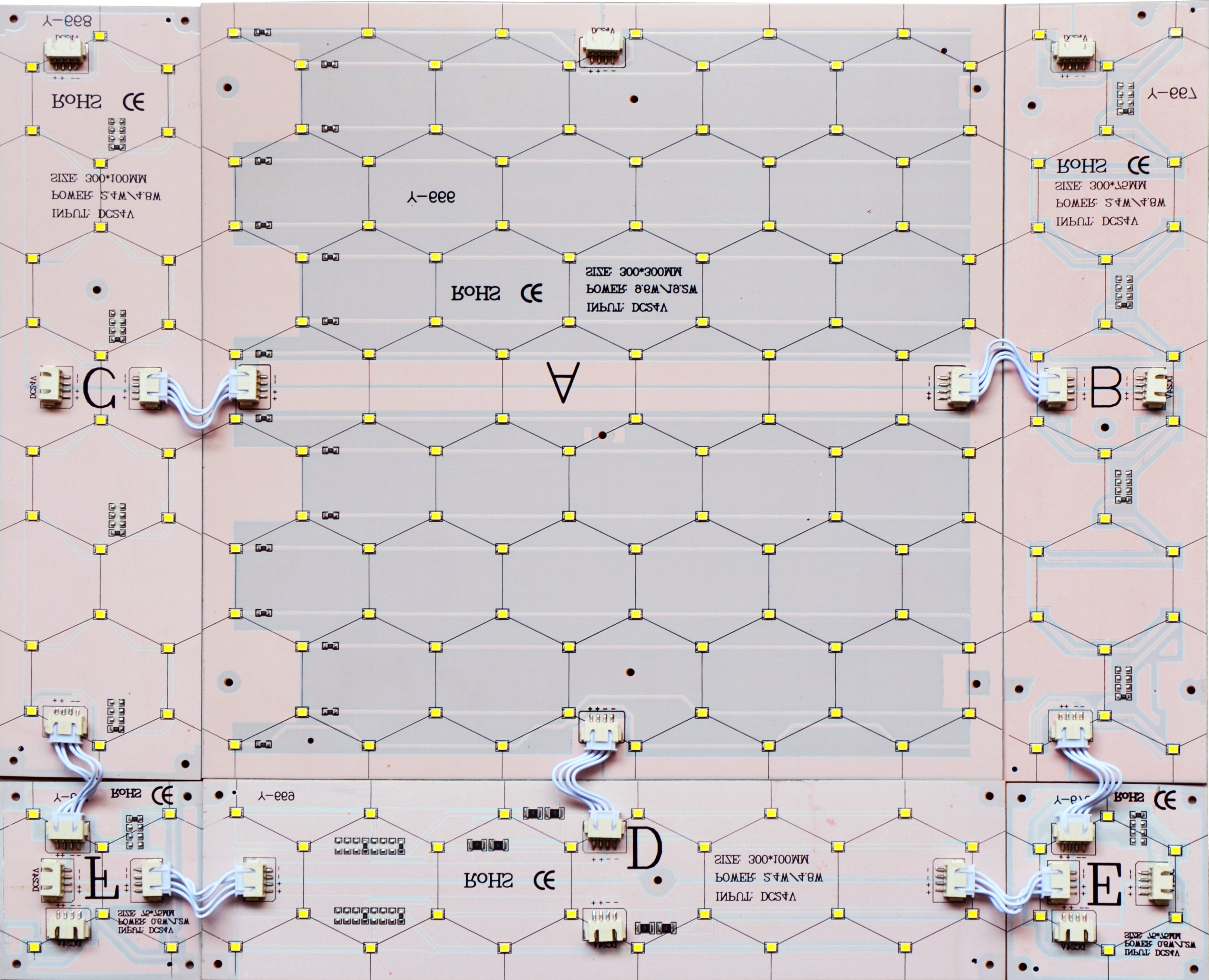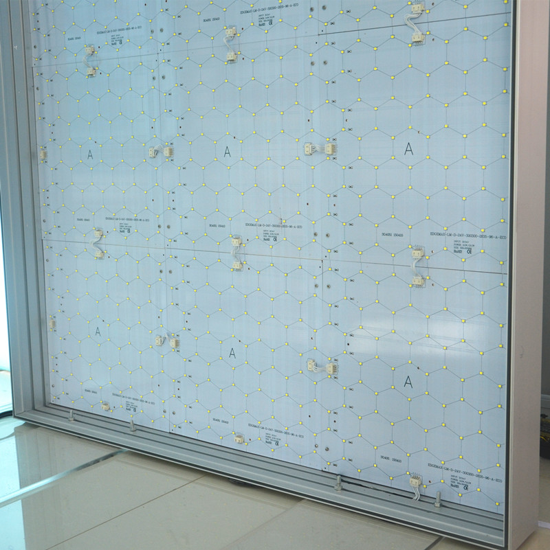 With the advanced and unique design, LED backlight module has different sizes from A board to F board. When two boards connect each other, there comes to be a honey comb shape. This lighting solution is specially for the projects which have high requirement on lighting effect. At least 50mm distance from lights to front cover is suggested.