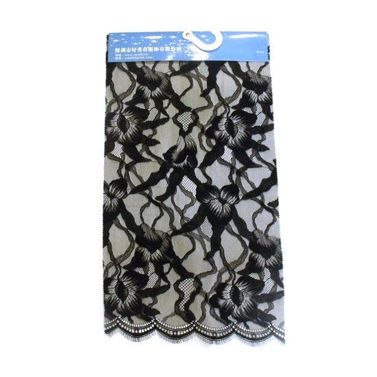 This lace fabric is carefully made for a refined look. The beautiful, detailed lace fabric is designed with a scalloped edge. This gorgeous fabric is suitable for making blouses, overlays on dress or skirts, bridal accessories and more.